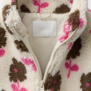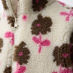 Keep your child warm and stylish with this cozy fleece jacket. Featuring a charming floral design in cream, brown, and pink, it's perfect for chilly days. The soft material ensures comfort and warmth.