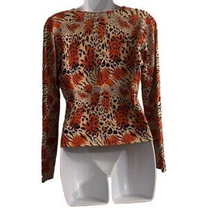 Joseph A. Vibrant Orange and Black Silk Blend Animal Print Blouse, Large