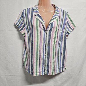 Marine Layer Lucy Resort Striped Top Blouse Shirt Women Size L Multicolor Hemp 3