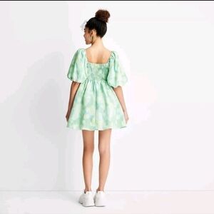 Step out in style with this elegant green mini dress. Featuring charming puff sleeves, it's perfect for any occasion.