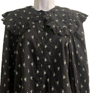 Universal Thread Womens Black Floral Eyelet Collar Button Up Blouse XS