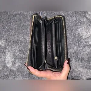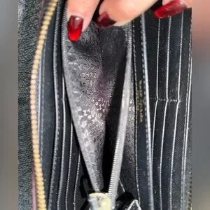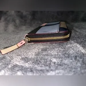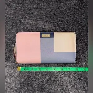 Elegant wallet with a modern block design. Features pink, blue, and cream colors. Ideal for daily use.