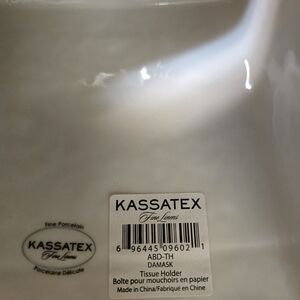 Elegant Kassatex tissue holder and accessories in fine porcelain. Adds sophistication to any space.