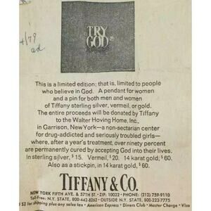 Vintage '70s Tiffany & Co Sterling Gold Overlay TRY GOD Vermeil Lapel Pin
