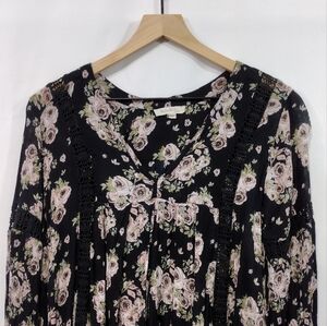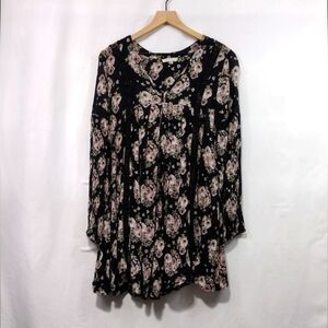 Rebellion Floral Dress Women's M Black Pink Cottagecore Peasant Retro 90s Y2K