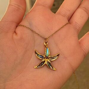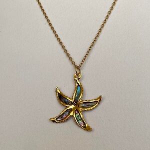cute stainless steel gold abalone shell starfish pendant necklace! ⭐️🐠🐬🐚