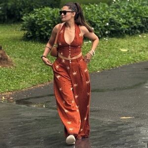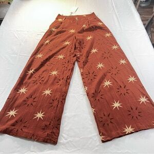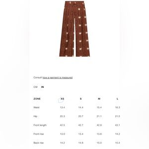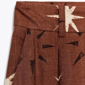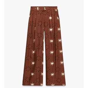 ZARA SUN PRINT BOHO LINEN BROWN WIDE LEG PANTS XS NWT