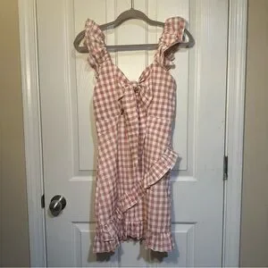 Embrace elegance with this pink gingham mini dress. Adorned with charming ruffles and a stylish bow, it's ideal for casual outings.