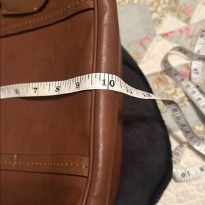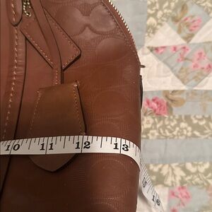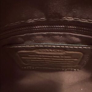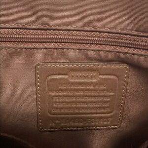 Brown leather Coach handbag in very good condition. Inside looks new, there is some very minor wear on the strap. Not really noticeable.The cross body strap has never been used. Large pocket on the back for cellphone. Inside has one zippered pocket and two slip pockets. Gold accents
