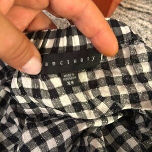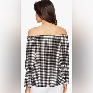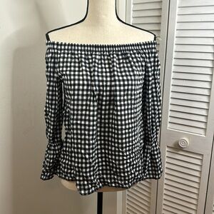 Sanctuary Off the Shoulder Black Gingham Charlotte Check Print Blouse. Sz XS