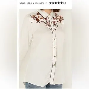 ARIAT WOMEN'S ELSA FLORAL EMBROIDERED LONG SLEEVE SNAP WESTERN SHIRT. XS