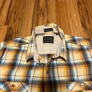 7 Diamonds Men's Blue and Yellow Plaid Casual Shirt Size S