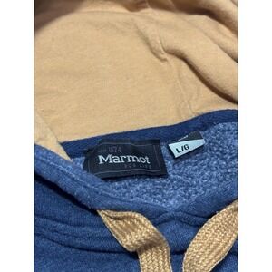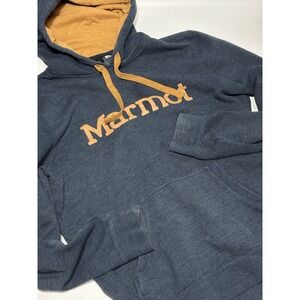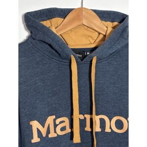 Marmot Mens Large Fleece Lined Pullover Logo on Front Blue Hoodie Sweatshirt