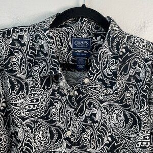 Chaps Classics Womens Plus 3X Black White Paisley No Iron Button Up Shirt Blouse
