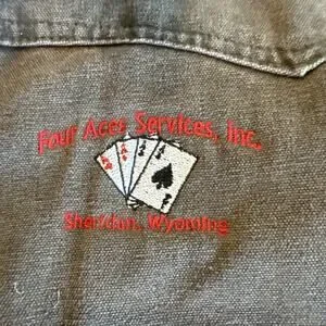 Amazing 4 aces services Inc. Sheridan Wyoming stitched on the back