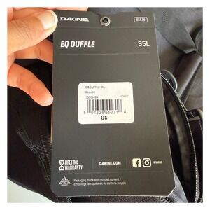 Keywords: DAKINE, EQ Duffel, 35L, Black Duffel Bag, Travel Bag, Gym Bag, Carry On Bag, Shoulder Bag, New with Tags, NWT, Sports Bag, Unisex Duffel, Lightweight Duffel, Weekend Bag, TRAVEL , PACKABLE