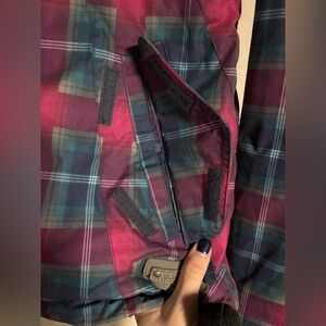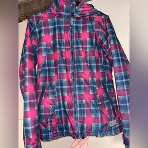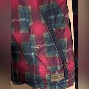 Vermont based Burton Snowboards women’s ski jacket in like- new condition! Exceptional quality- literally made for a day on the slopes with thoughtful details such as a snow skirt, zipper vented underarms, ski pass/ ID sleeve in interior breast of jacket, dual Velcro & zipper exterior pockets, and hood.