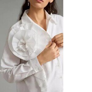 Anthropologie Forever That Girl Appliqué Shirt Dress White B38