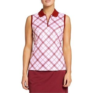 New! Lady Hagen Clubhouse Plaid Sleeveless Polo Shirt Womens Size XXL