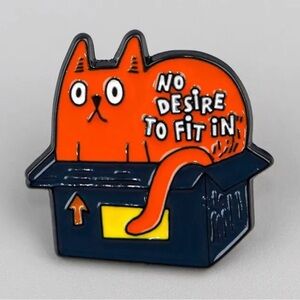 3/$25 Orange Cat Stuffed in a Small Box “No Desire To Fit In” Unisex Pin