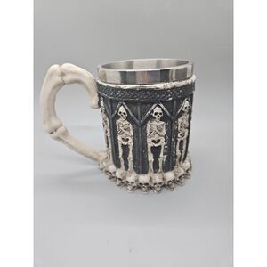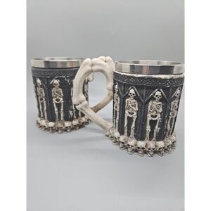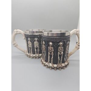 Set Of (2) Skeletons & Skulls 3-D Tankard Stainless Steel Goth Drinking Mug/ Cup