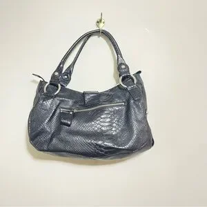 Guess Black Croc-Embossed Shoulder Bag with Silver Details