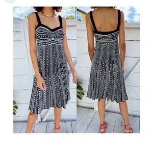 Missoni black and white knit sundress. Beautiful geometric pattern woven into a gorgeous fit and flare sundress. Black straps, gathered front and full skirt, this dress is a showstopper. Like new condition.