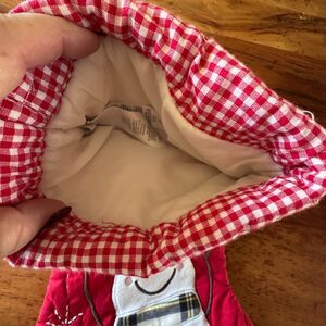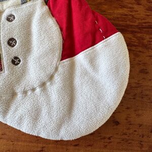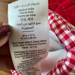 This is a brand new with original tags item. This hand quilted Christmas stocking will make you smile on Christmas morning. Made from cotton in bright red with white and gingham print. The happy snowman scene is appliquéd on the front, with snowflake embroidery. Measures 20x11".