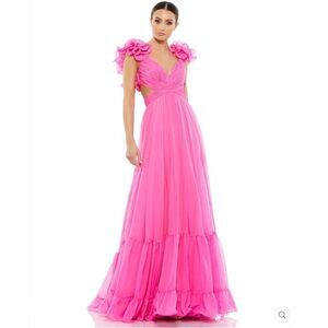 NWT Mac Duggal Ruffle Tiered Cut Out Chiffon Gown 67911 Hot Pink Size 4