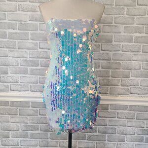 Boutique Mermaid Scales Iridescent Sequin Mini Dress Party Costume Cosplay NEW