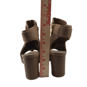 ANA TROUT—Wm’s Taupe Open Toe/Heel Mesh Ankle Sandals Stacked 3”Heel Side Zip—6M