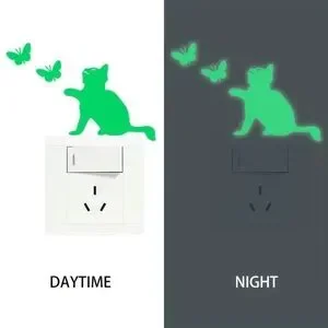 Glow In The Dark: This Cat/Butterflies Wall Sticker Is Luminous, Making It Perfect For Adding A Unique Touch To Your Decor Even In The Dark.