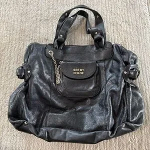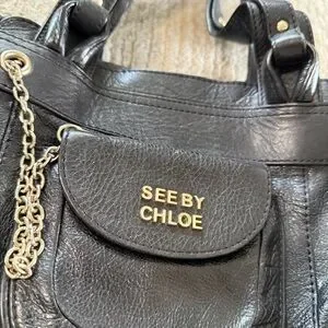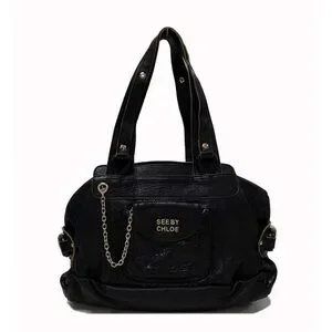 Vintage See by Chloe Funny Love Black Leather Shoulder Bag with Flaw