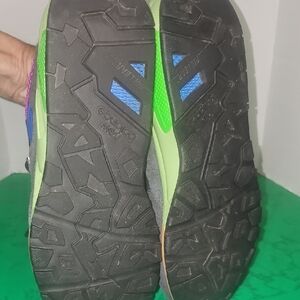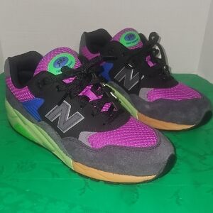 This New Balance 580 starts off with a magenta open mesh construction on the toes, tongues, and ankles which is then joined by different shades of grey on the hairy suede and nubuck overlays on the toes, mudguards, heels, side panels, and the “N” branding on the side panels. For more color we see the addition of blue, orange, and green on the overlays with a black rubber outsole serving as the finishing touch.