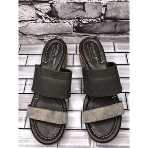 These sandals are made in Italy with synthetic outsole material and a leather insole for cushioning comfort. The straps and buckle accents add style and performance to the sandals. The shoe is available in US size 7.5 and UK size 5.5 with a medium width. Add a touch of metal to your shoe collection with these elegant and versatile sandals.