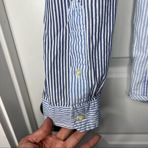 American Eagle Slim Fit Button Front Striped Color Block Shirt