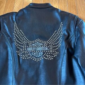 Harley Davidson Leather Jacket Women's Sz Large Black Heavy Biker Riding Studded