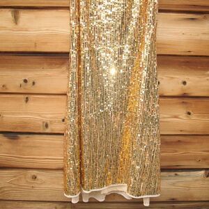 MAC DUGGAL 93976 Gold Open Back High Neck Sequin Gown Dress