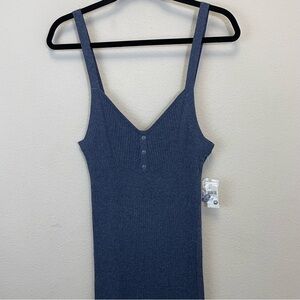 Anthropologie Daily Practice Blue Ribbed Ruffle Hem Slim Tank Dress Size L