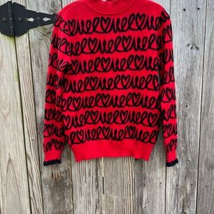 Elle Scribble Heart Sangria Punch Sweater size Small NWT