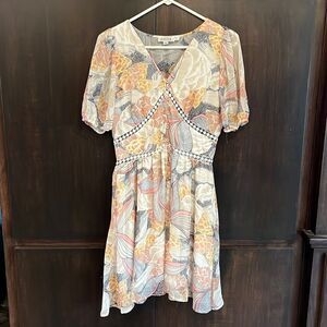 This dress is made by Molly Bracken. It’s a big floral print with pink buttons down the front. Size small and in great pre owned condition. Smoke and pet free home.