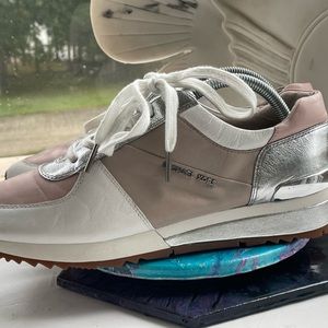 Gently Used! Michael Kors size 10 Allie Trainers Pink, White & Silver Genuine Leather! Lace up! Great everyday wear!
