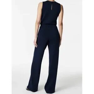 Spanx AirEssentials Sleeveless Jumpsuit Classic Navy Romper Open Back Wide Leg L