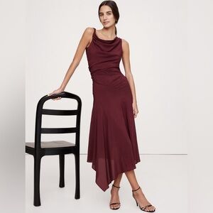 NWT! Banana Republic Red Cherry Jam Crepe Twist-Shoulder Dress 🌎