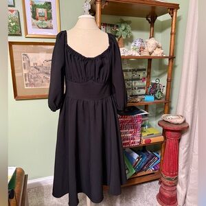 Elegant black midi dress. Perfect for any occasion. Classic and versatile style.