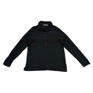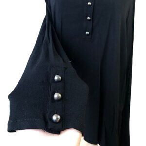 Marina Rinaldi black long long button collar T shirt style top tunic