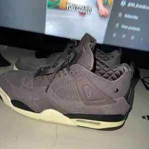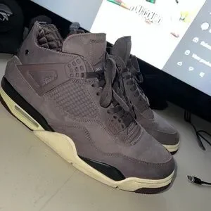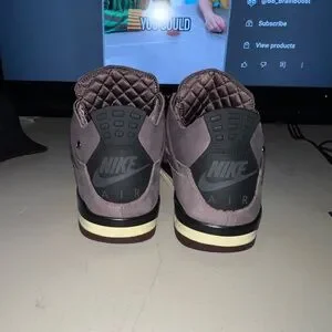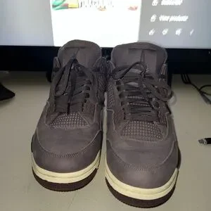 Stylish Jordan sneakers. Dark brown upper with cream accents. Perfect for casual wear.