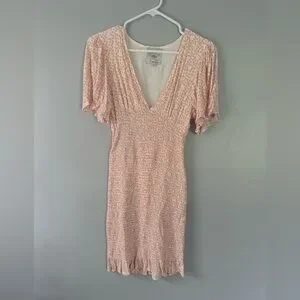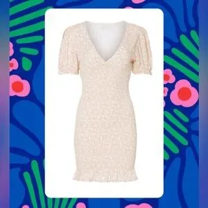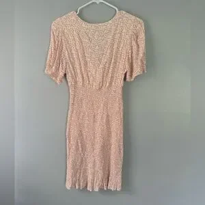 AREA pink Cream smocked Floral Mini Dress puff sleeves Rent the Runway Small