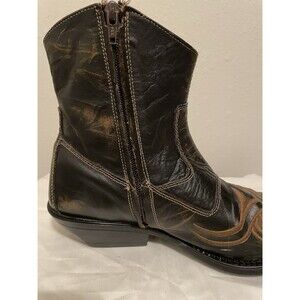 Ferrato Western Low Cut Ankle Boots Mens Cowboy Stitched Sz 8 Pointed Toe