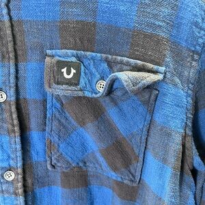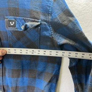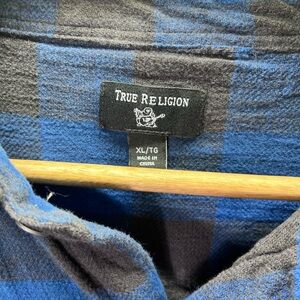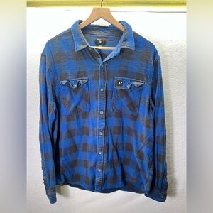 True Religion Blue Plaid Flannel Shirt Mens XL 100% Cotton Outdoors Manly 2102